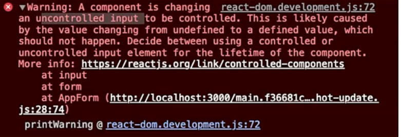 → React에서 Form 을 만들 때, uncontrolled input 이라는 Warning 이 있다.