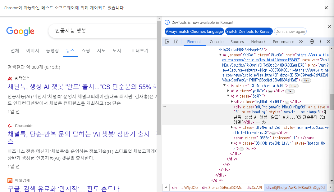 url = 'https://www.google.com/search?q=%EC%9D%B8%EA%B3%B5%EC%A7%80%EB%8A%A5+%EC%B1%97%EB%B4%87&sca_esv=30c375223fbe6df1&biw=929&bih=864&tbm=nws&ei=t1IPZs_OB4Dc2roP1eSCuAs&udm=&ved=0ahUKEwiPhov_9KmFAxUArlYBHVWyALcQ4dUDCA0&uact=5&oq=%EC%9D%B8%EA%B3%B5%EC%A7%80%EB%8A%A5+%EC%B1%97%EB%B4%87&gs_lp=Egxnd3Mtd2l6LW5ld3MiE-yduOqzteyngOuKpSDssZfrtIcyCxAAGIAEGLEDGIMBMgUQABiABDIFEAAYgAQyBRAAGIAEMgUQABiABDIFEAAYgAQyBRAAGIAEMgUQABiABDIFEAAYgAQyBRAAGIAESKAPUNIEWJgOcAB4AJABAJgBYqAB7AeqAQIxMbgBA8gBAPgBAZgCCqACrQfCAgoQABiABBiKBRhDwgIEEAAYHsICBhAAGB4YD8ICBhAAGAgYHpgDAIgGAZIHAzkuMaAHzEM&sclient=gws-wiz-news'