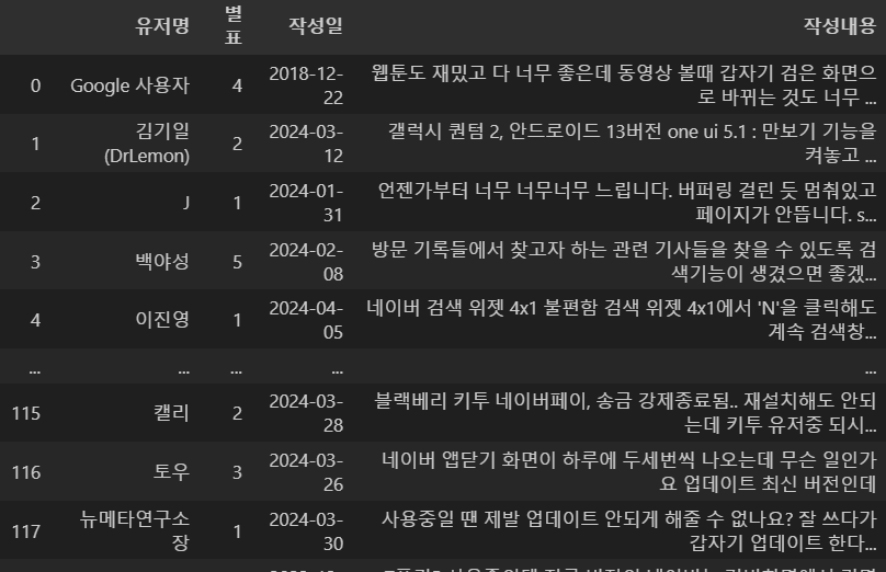 df.to_csv('naver_playstore.csv',encoding='utf-8-sig',index=False)
