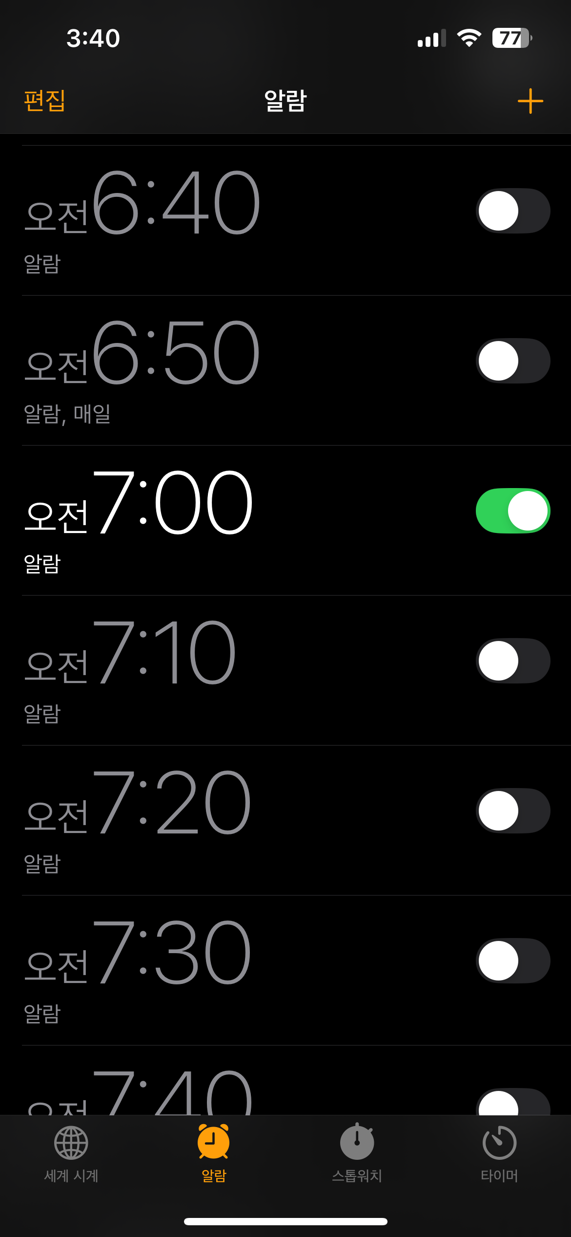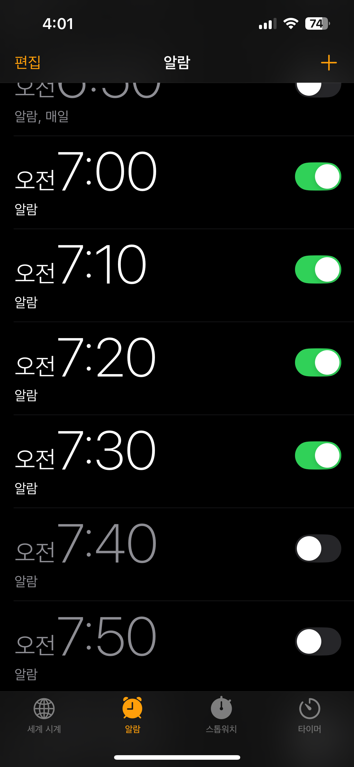 이렇게 되고 싶지 않으니 10분 단위로 여러 개의 알람을 키고 싶습니다.