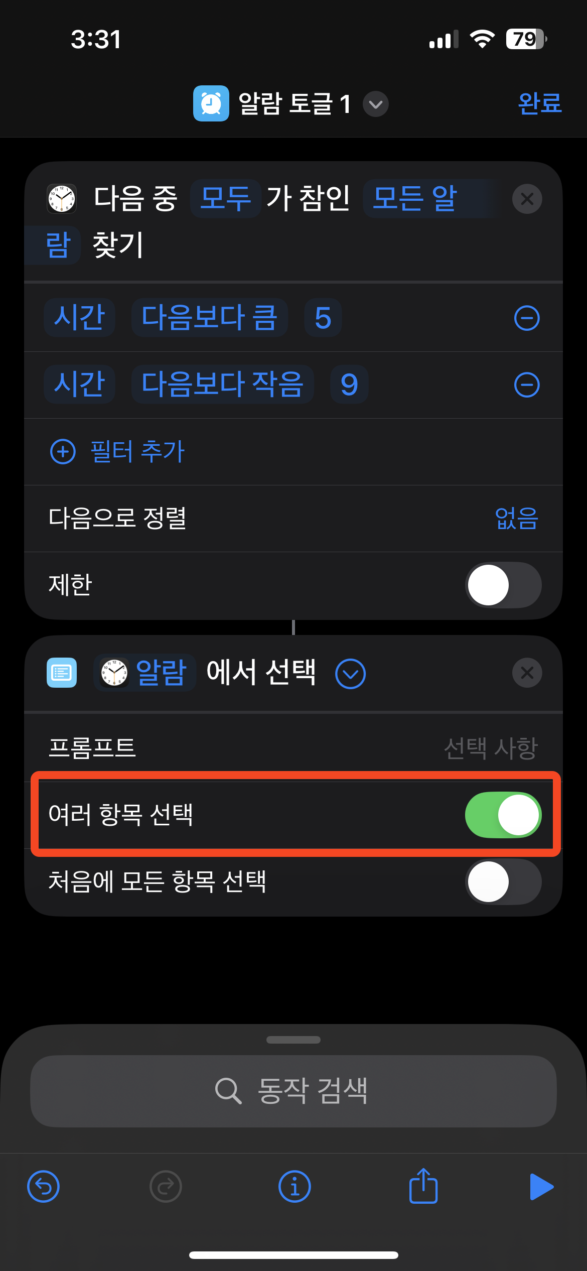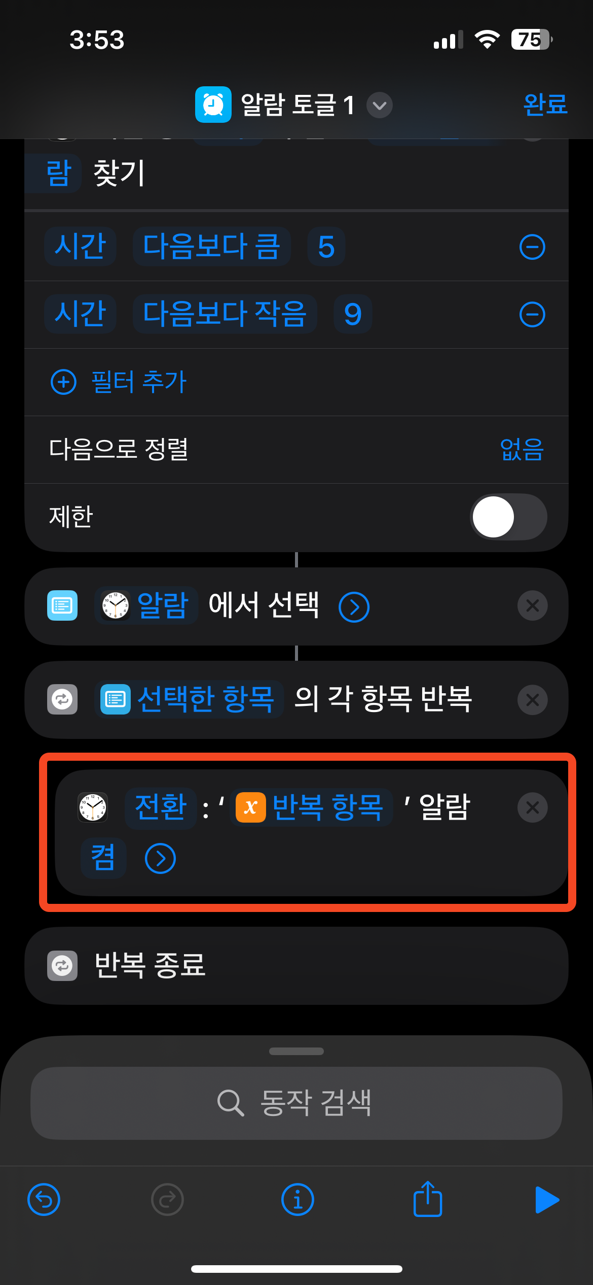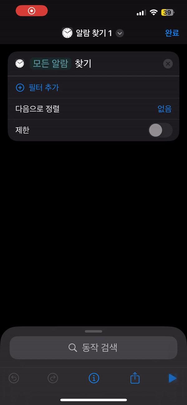 이렇게 생성한 단축어를 매일 자기 전 실행하여 다음날의 기상 시간을 설정하고 싶습니다.