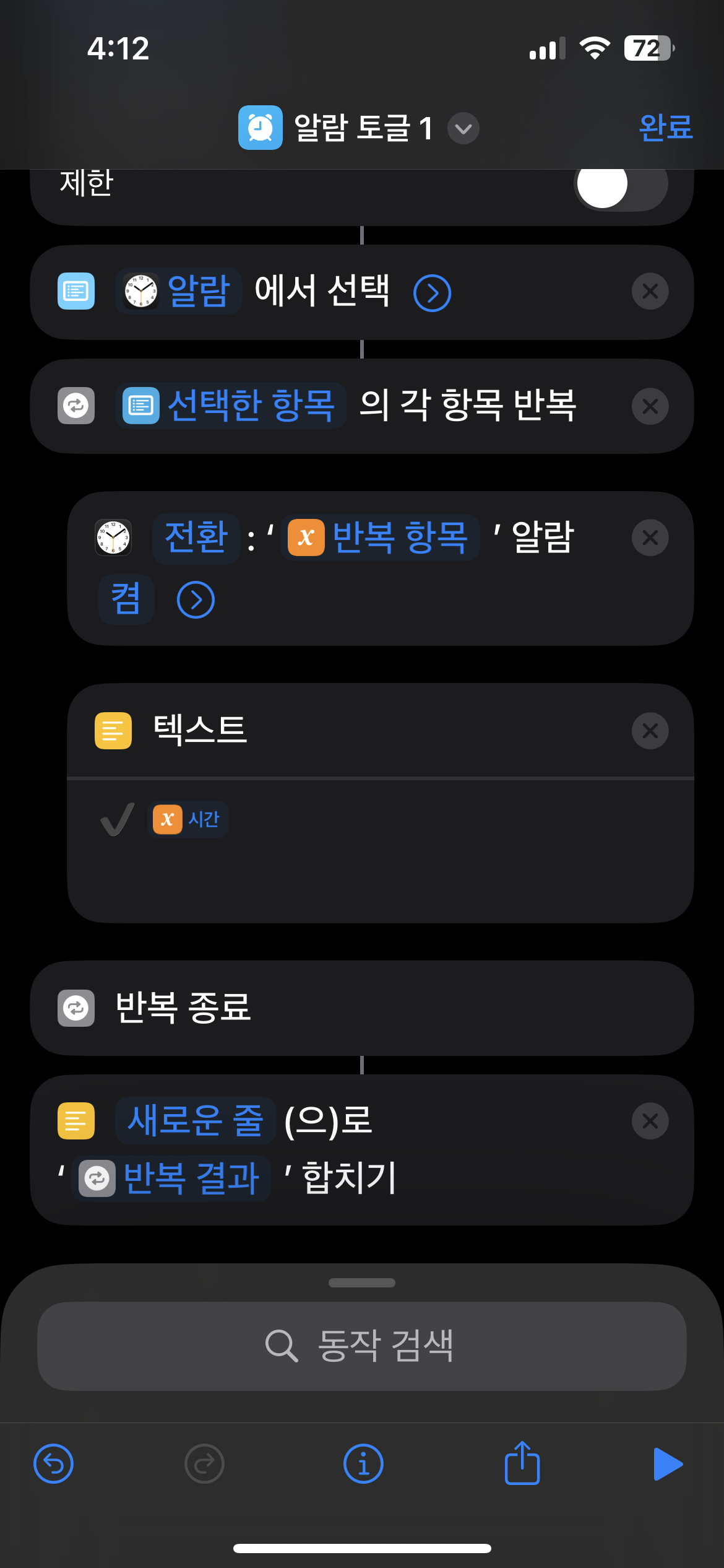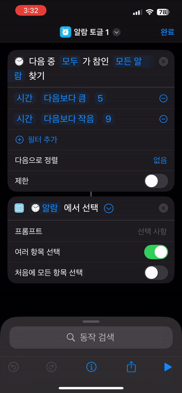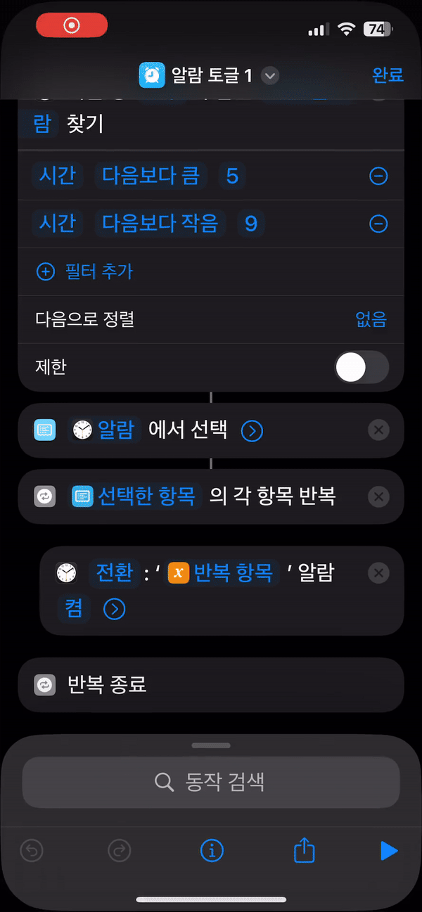 이전 단계에서 추가했었던 알람 토글 단계를 삭제해 둡니다.