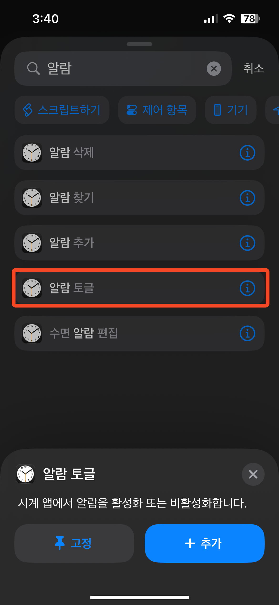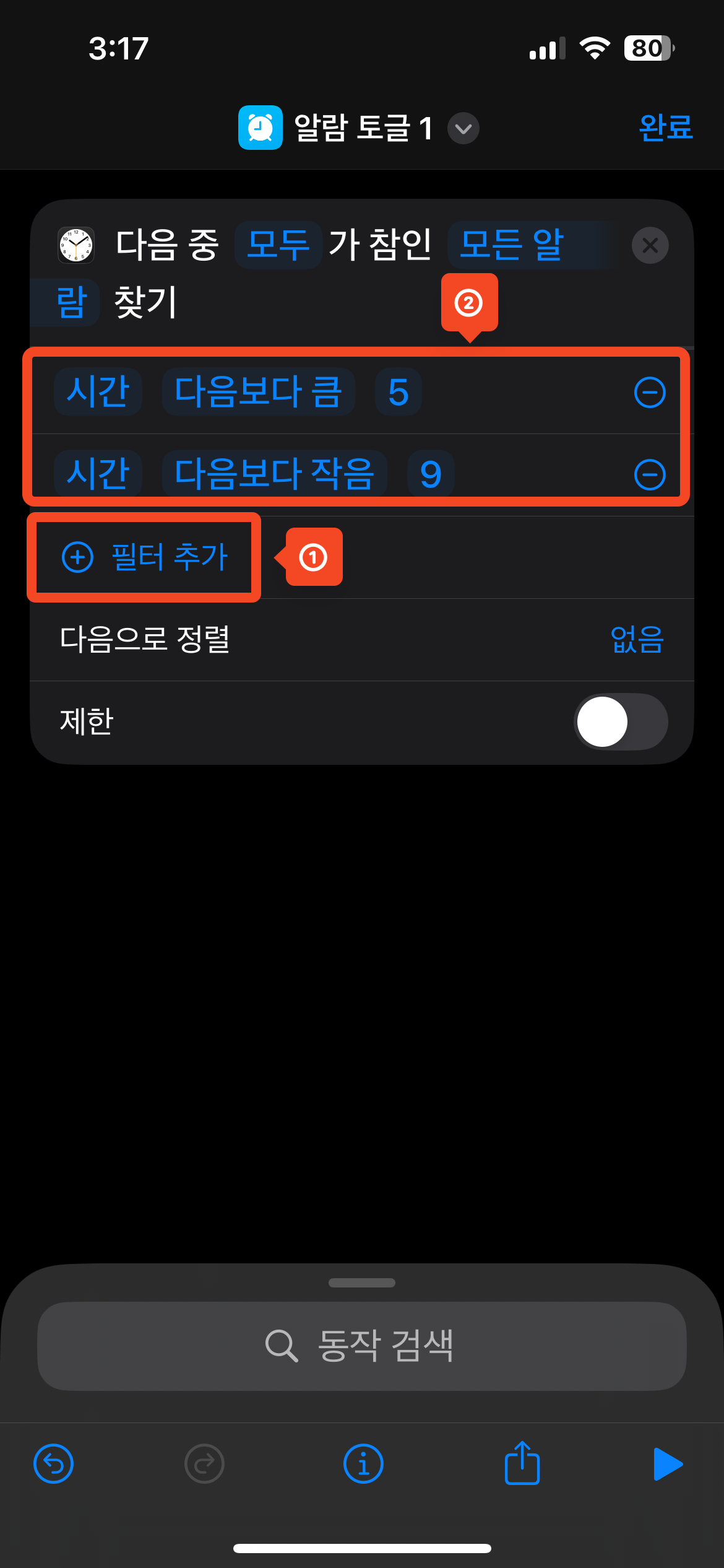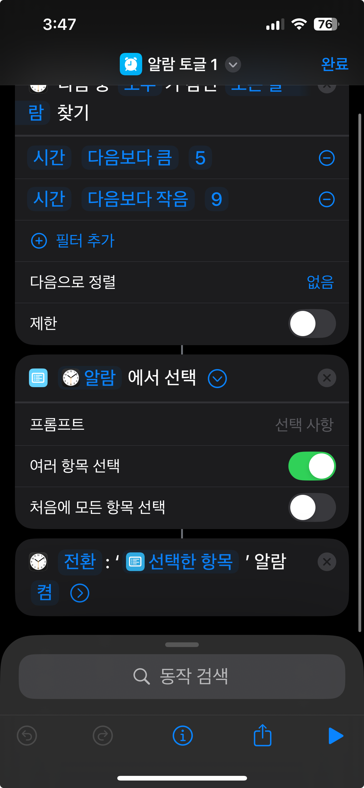 이전 단계에서 추가했었던 알람 토글 단계를 삭제해 둡니다.