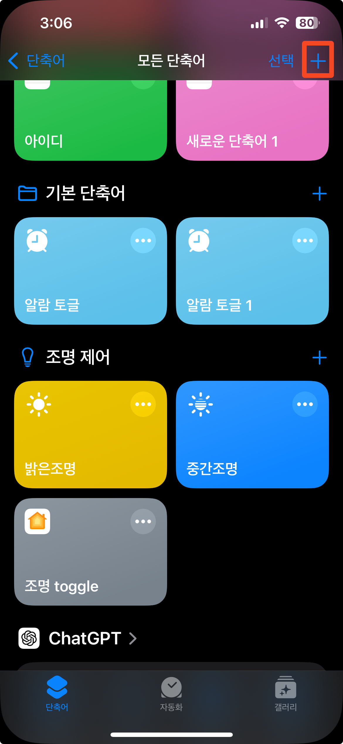 아이폰의 단축어 앱에서 새로운 단축어를 추가하여 시작합니다.