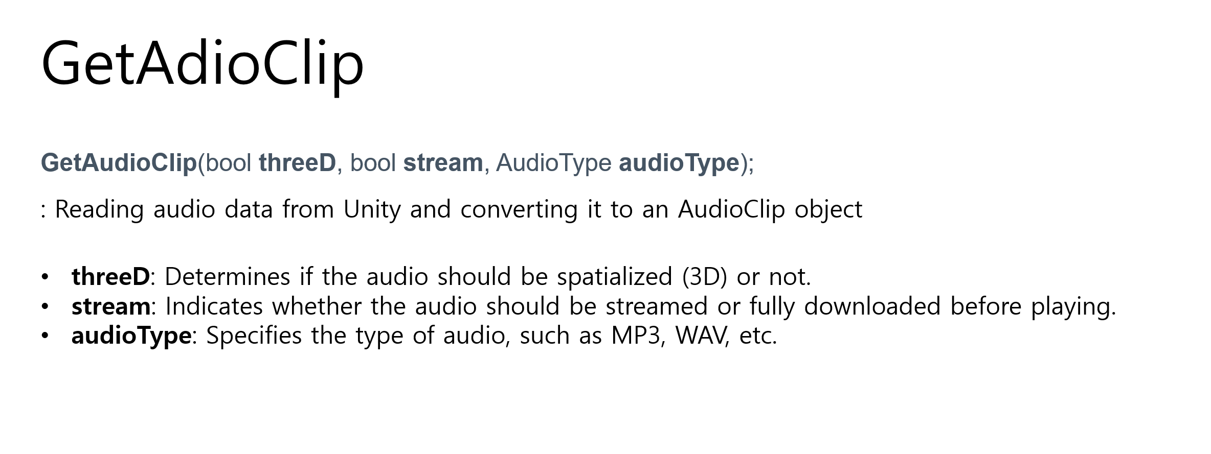 audio.clip = www.GetAudioClip(false, true, AudioType.MPEG);