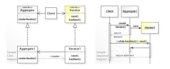 - 컨렉션의 구현 방법을 노출하지 않으면서 집합체 내의 모든 항목에 접근하는 방법을 제공한다.