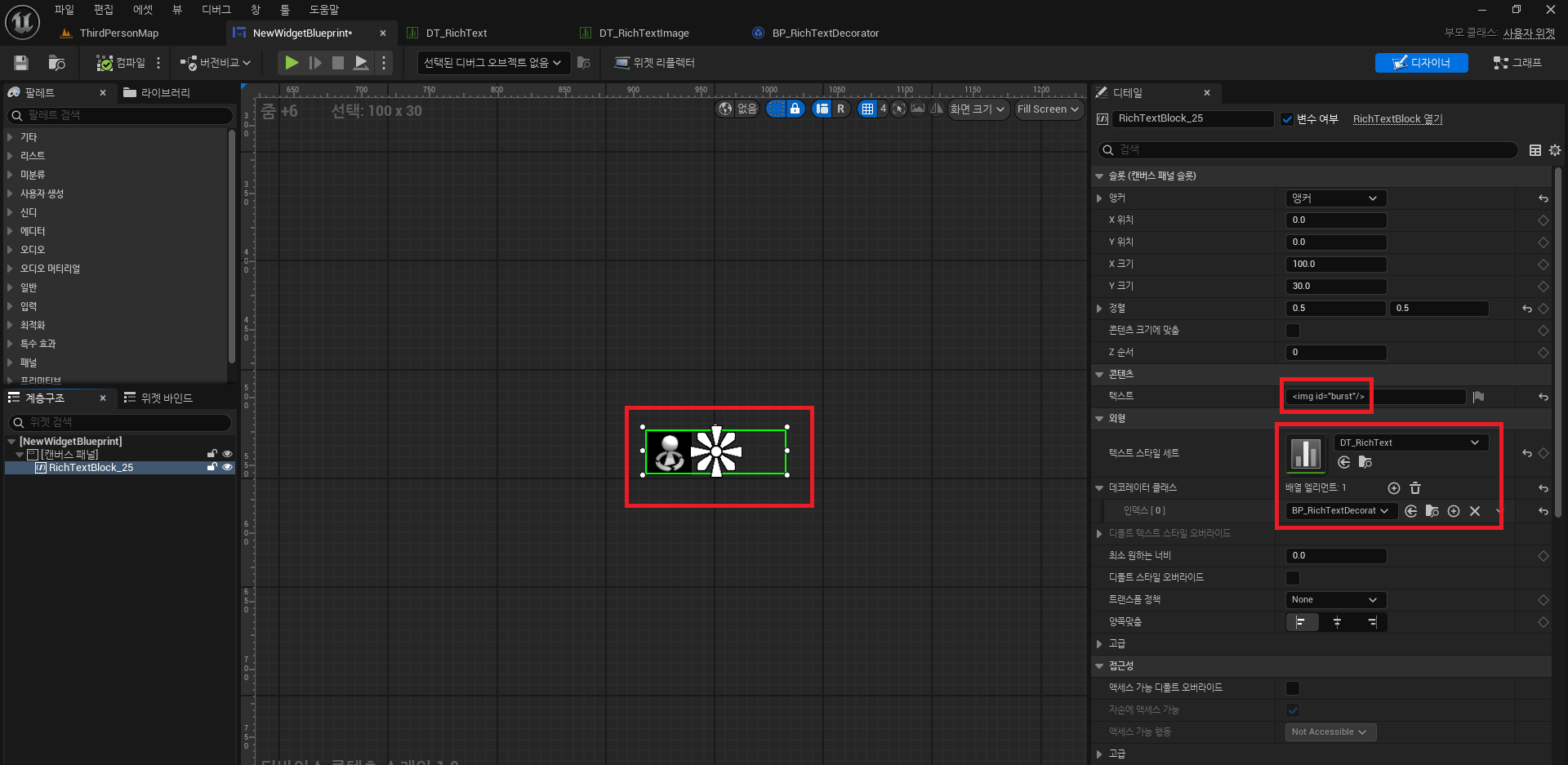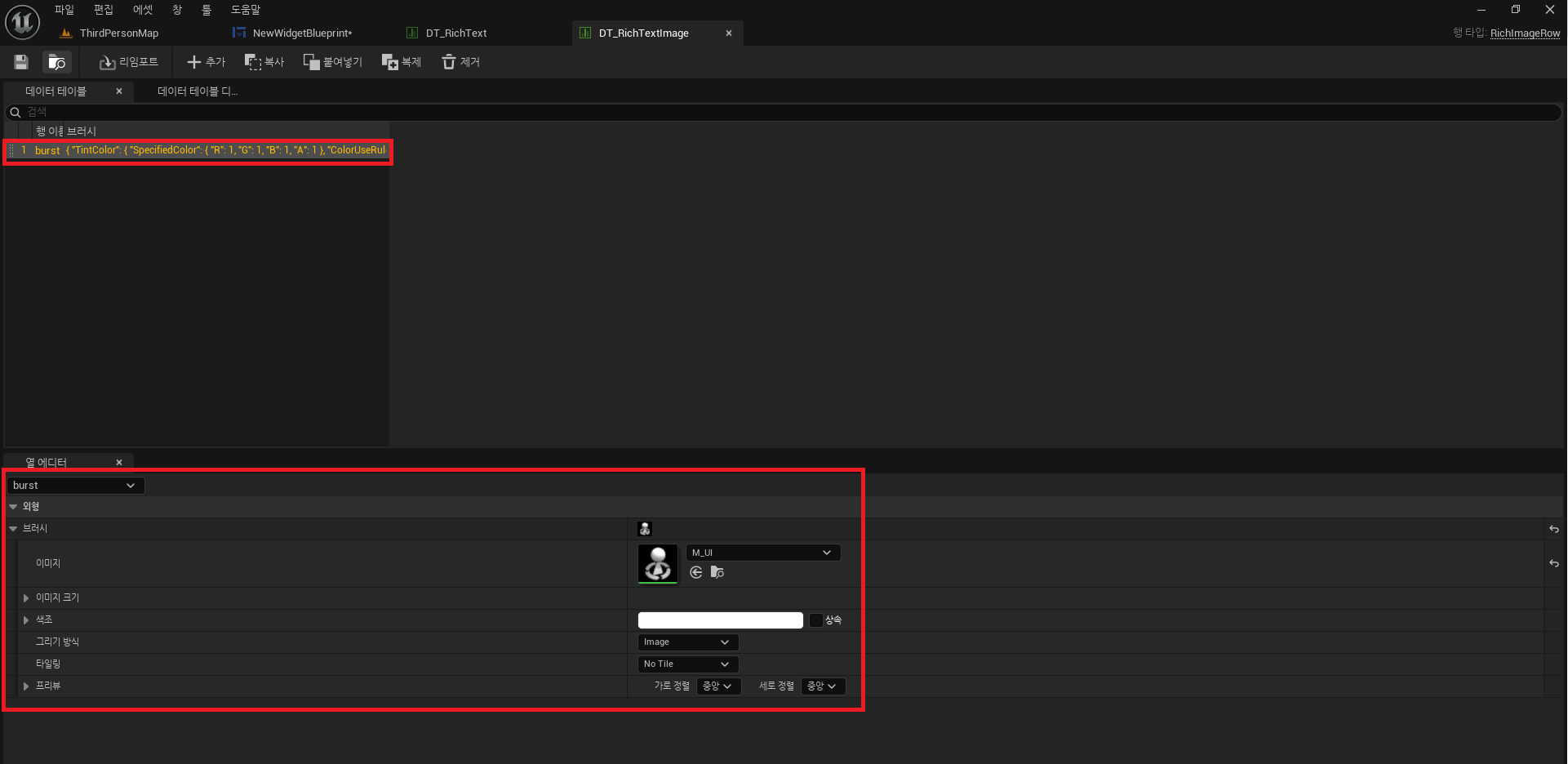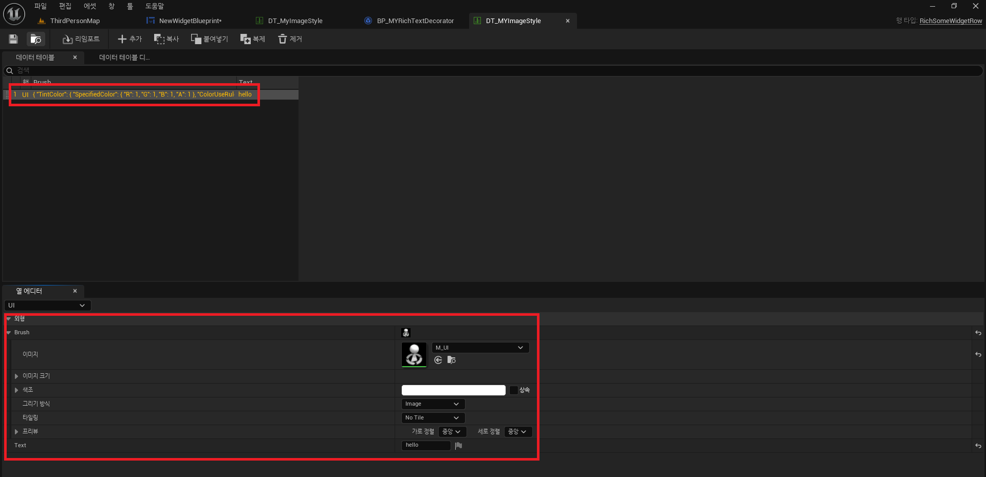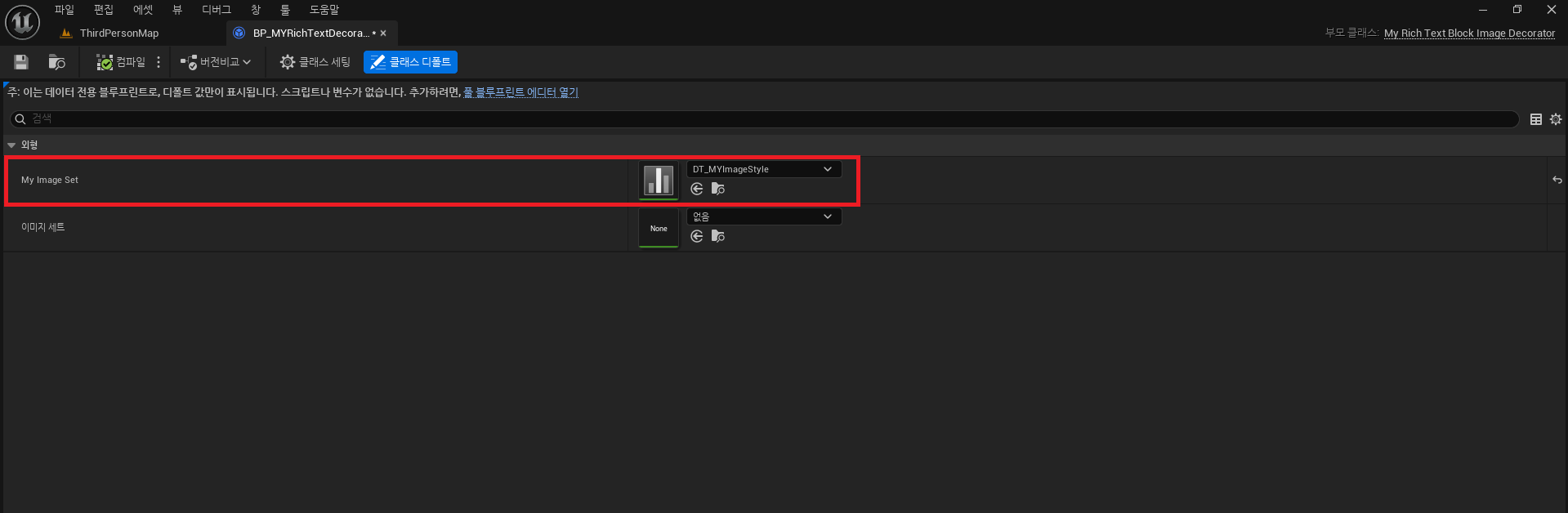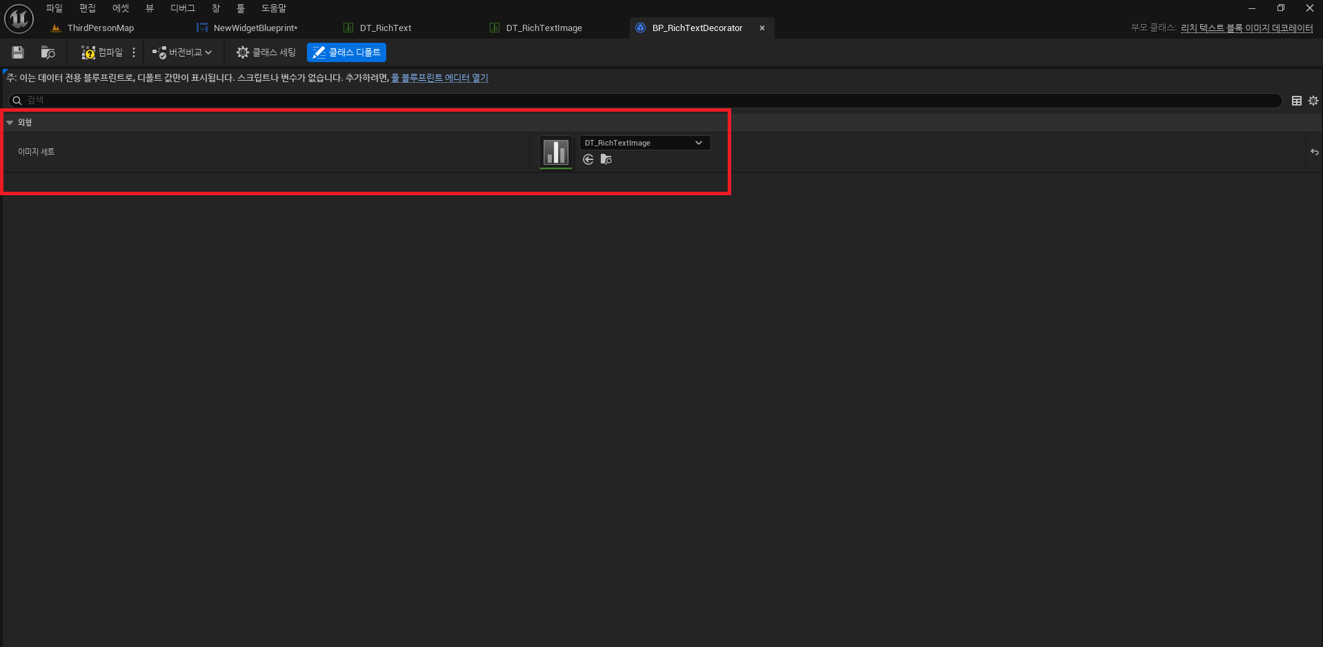 이미지의 경우엔 RichTextBlockImageDecorator 클래스 BP를 만들어서 만든 DT를 설정해줘야 한다.