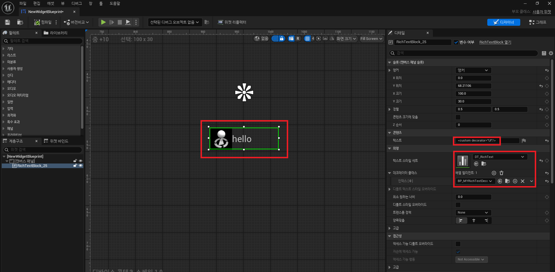 RichText의 Decorator에 방금 만든 Decorator를 설정 해주면 된다.