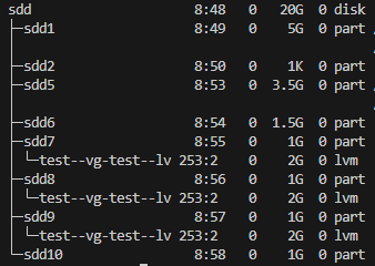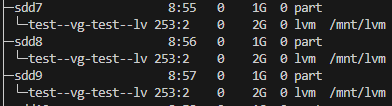 vgcreate test-vg /dev/sdd7 /dev/sdd8 /dev/sdd9