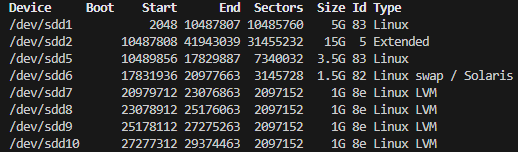 pvcreate /dev/sdd7 /dev/sdd8 /dev/sdd9 /dev/sdd10