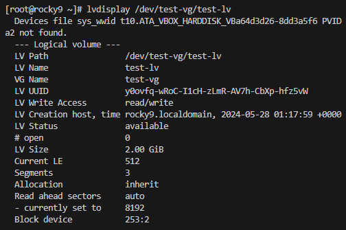 Do you really want to remove active logical volume test-vg/test-lv? [y/n]: y
