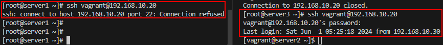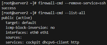 # server2의 ssh 서비스를 삭제하여 ssh접근 차단