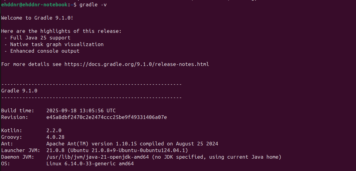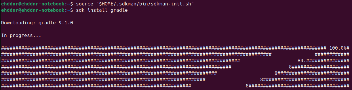 지금은 Gradle 9.1.0 설치는 잘 됐지만, Java가 설정되지 않아서 Gradle이 실행 못 하는 상태입니다.