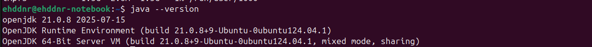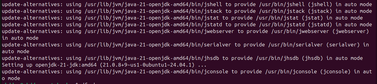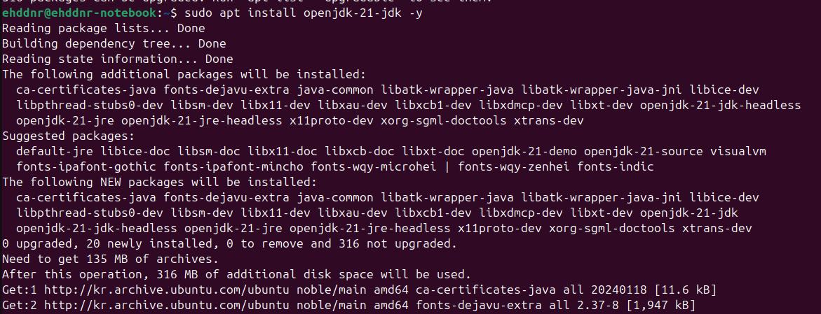 그러고 나서 sudo apt install openjdk-21-jdk -y 를 진행합니다.