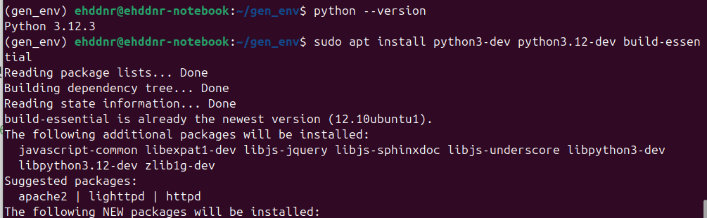 sudo apt install python3-dev python3.12-dev build-essential을 진행했습니다.