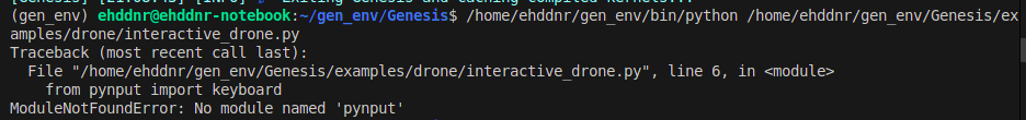 에러의 내용인 즉 pynput이 존재하지 않는다는것!