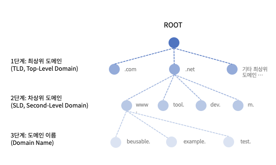 1단계 : 최상위 도메인 (TLD, Top-Level Domain)