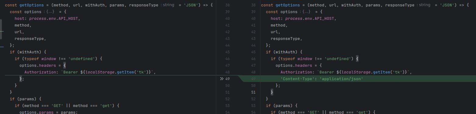 getOptions 함수에서 인증 헤더를 설정할 때, 'Content-Type': 'application/json'을 추가했다. 이는 서버에 JSON 형식의 데이터를 보내고 받을 것임을 명시해줌.