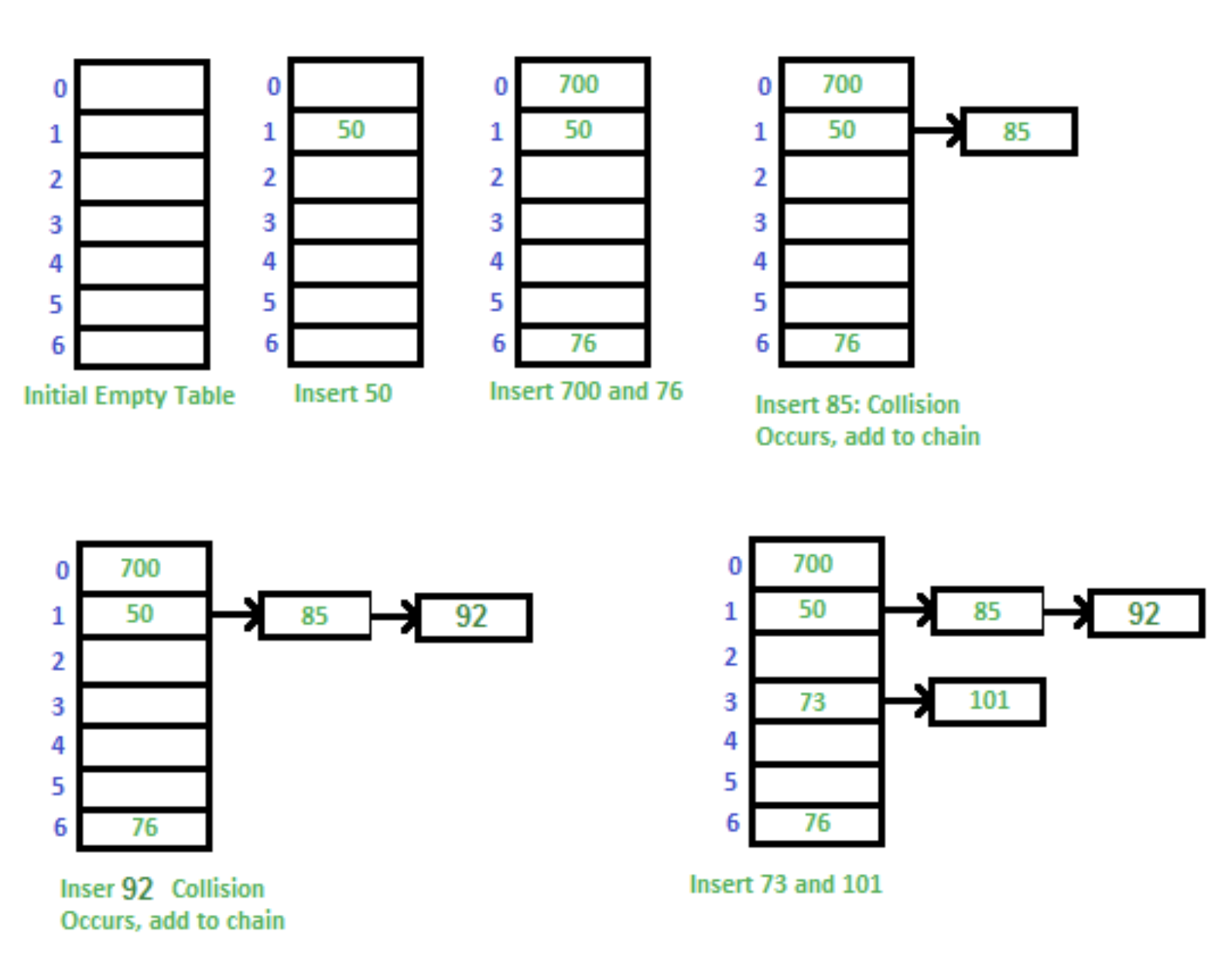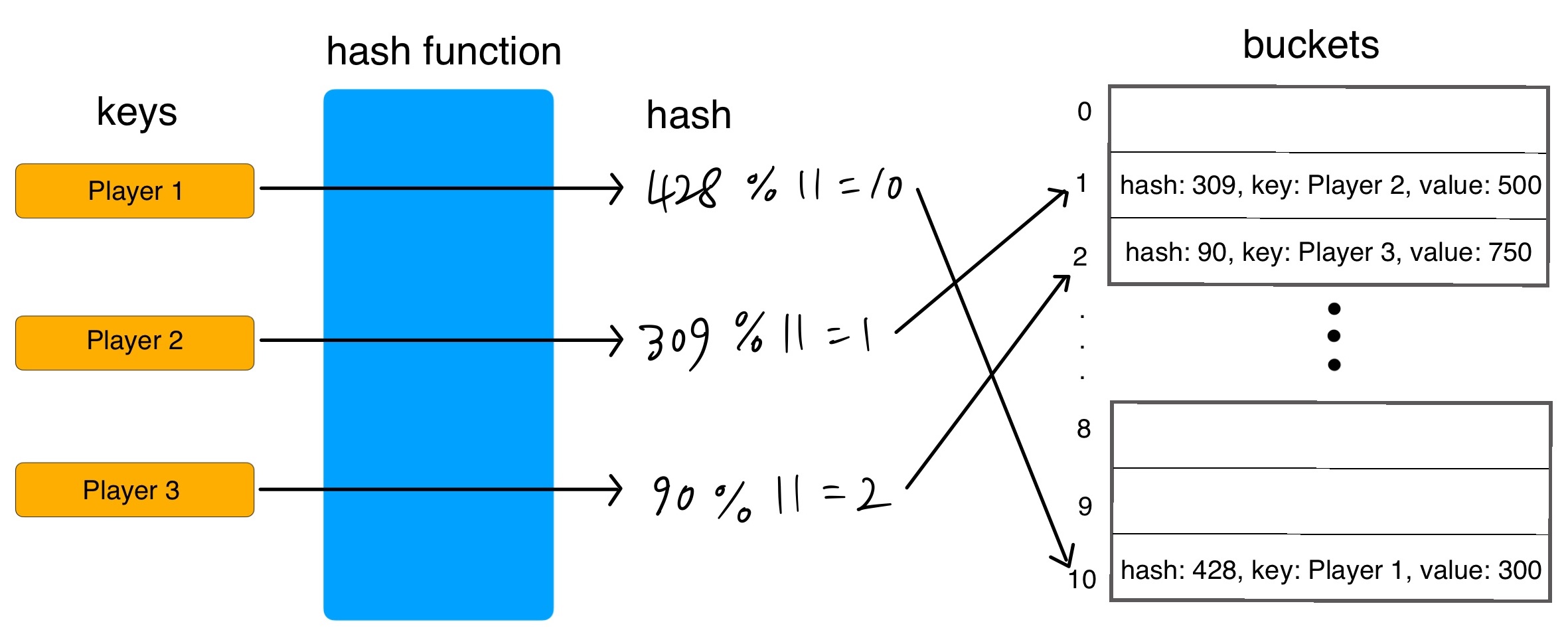 위와 같이 값을 저장하면 bucket마다 하나의 데이터만 편하게 저장할 것 같지만 실제로는 그렇지 않다.