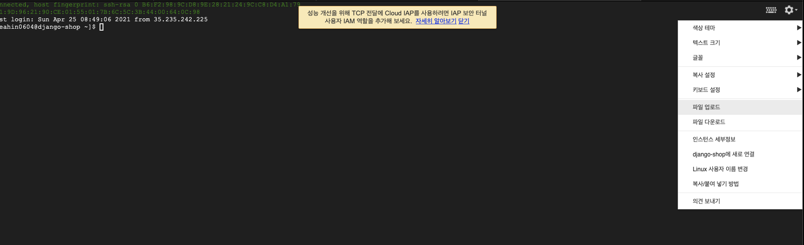 settings.py์์ ALLOWED HOSTํญ๋ชฉ์ ['*'](์ ์ฒด)๋ฐ๊ฟ์ฃผ์๋ค.sudo systemctl stop fire walld ๋ช