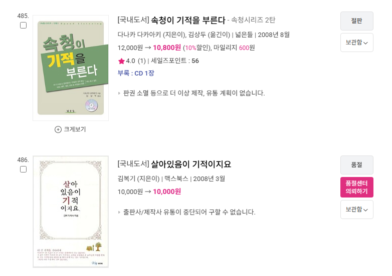 알라딘도 역시 사용자 의도와 거리가 먼 검색결과는 마지막 페이지에 존재했다.