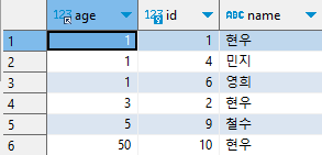 다음 사진은 데이터를 age를 기준으로 정렬해놓은 것이다.