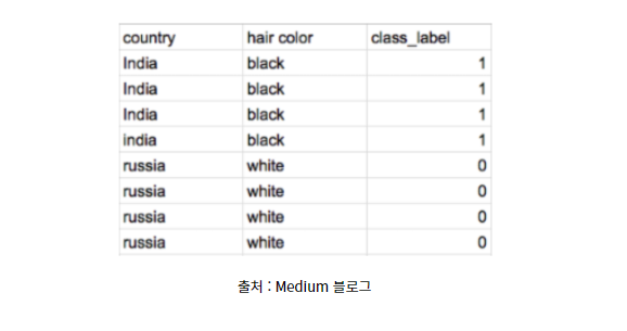 CatBoost는 데이터셋의 Class를 명확하게 구분할 수 있는 중복되는 변수가 2개 이상 존재한다고 할 때, 이를 하나의 변수로 통합해 처리한다. 이렇게 함으로써 Feature가 늘어나는 문제를 예방함으로써 연산 비용도 줄일 수 있게 된다. 바로 다음과 같은 예시일 때이다.