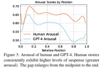 - 인간이 생성한 이야기를 읽을 때와 LLM이 생성한 이야기를 읽을 때의 흥분 곡선으로 근거를 제시하였다. (아래 이미지)