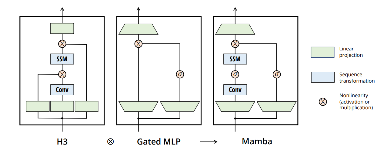 H3: Transformer에서 language modeling을 겨냥해서 만든 모델이다. 단순히 stacking하는 것이 아니라 하나의 block 단위의 복잡한 연산이 추가된다. 특정 연산을 추가해서 주어진 task를 더 잘하게 만든다.