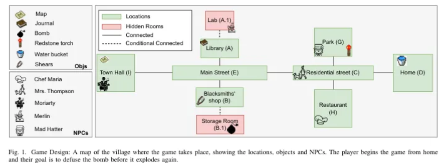 게임은 TextWorld(텍스트 어드벤처 게임을 위한 오픈 소스 엔진)를 기반으로 구현되었으며 GPT-4를 이용하여 NPC와 자유로운 대화가 가능하도록 하였다.