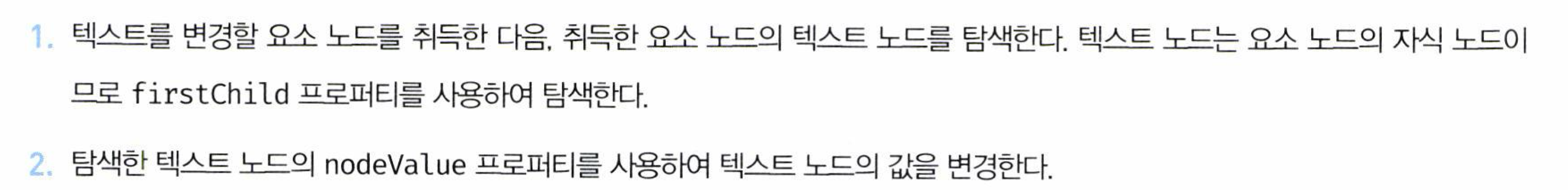- 텍스트 노드에 접근하려면 부모 노드인 요소 노드에 접근해야 한다.