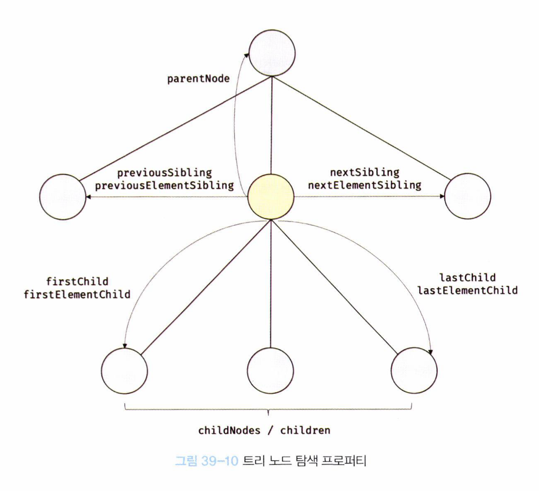 DOM 트리 상의 노드를 탐색할 수 있도록 Node, Element 인터페이스는 트리 탐색 프로퍼티를 제공한다.