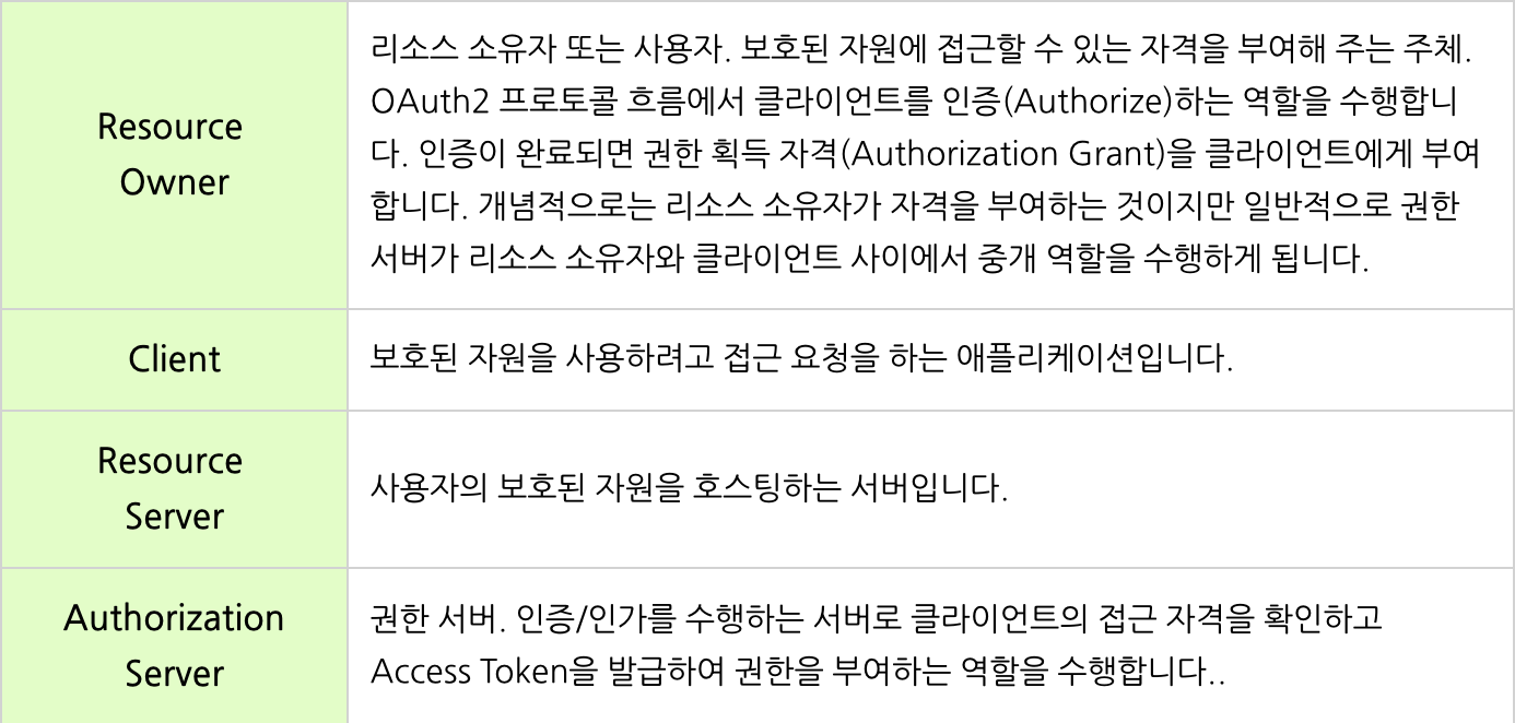 OAuth의 구성요소는 다음과 같다.