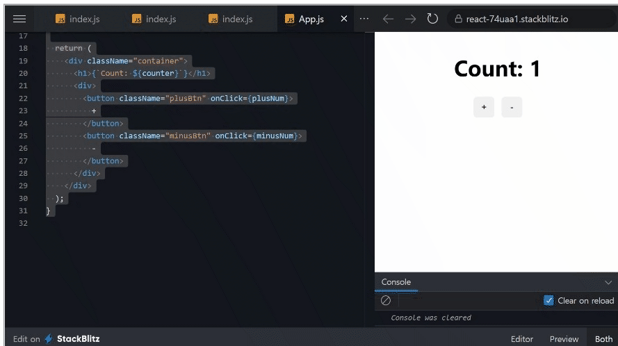 <h1>{`Count: ${counter}`}</h1>