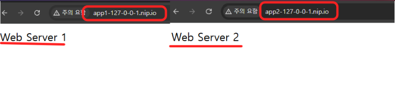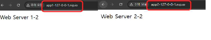 app1-127-0-0-1.nip.io > ha proxy => nginx_1_2:80 > Web Server 1-2 출력