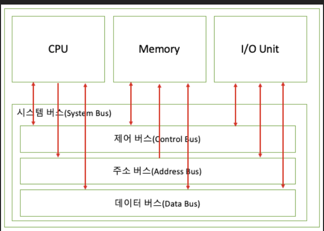 시스템 버스 | CPU, 메모리, I/O 장치를 연결 |