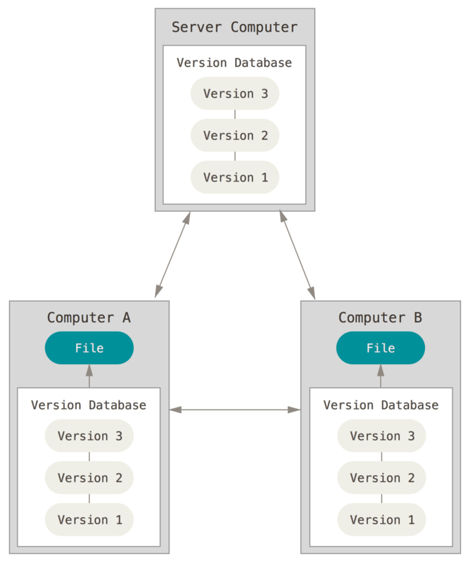 각각의 사용자 (computer A/B)는 자신이 작업한 작업물 혹은 수정사항들을 자신의 local computer에 저장하면 local Version Database와 연결된 Server Computer Version Database에서도 수정이된다.