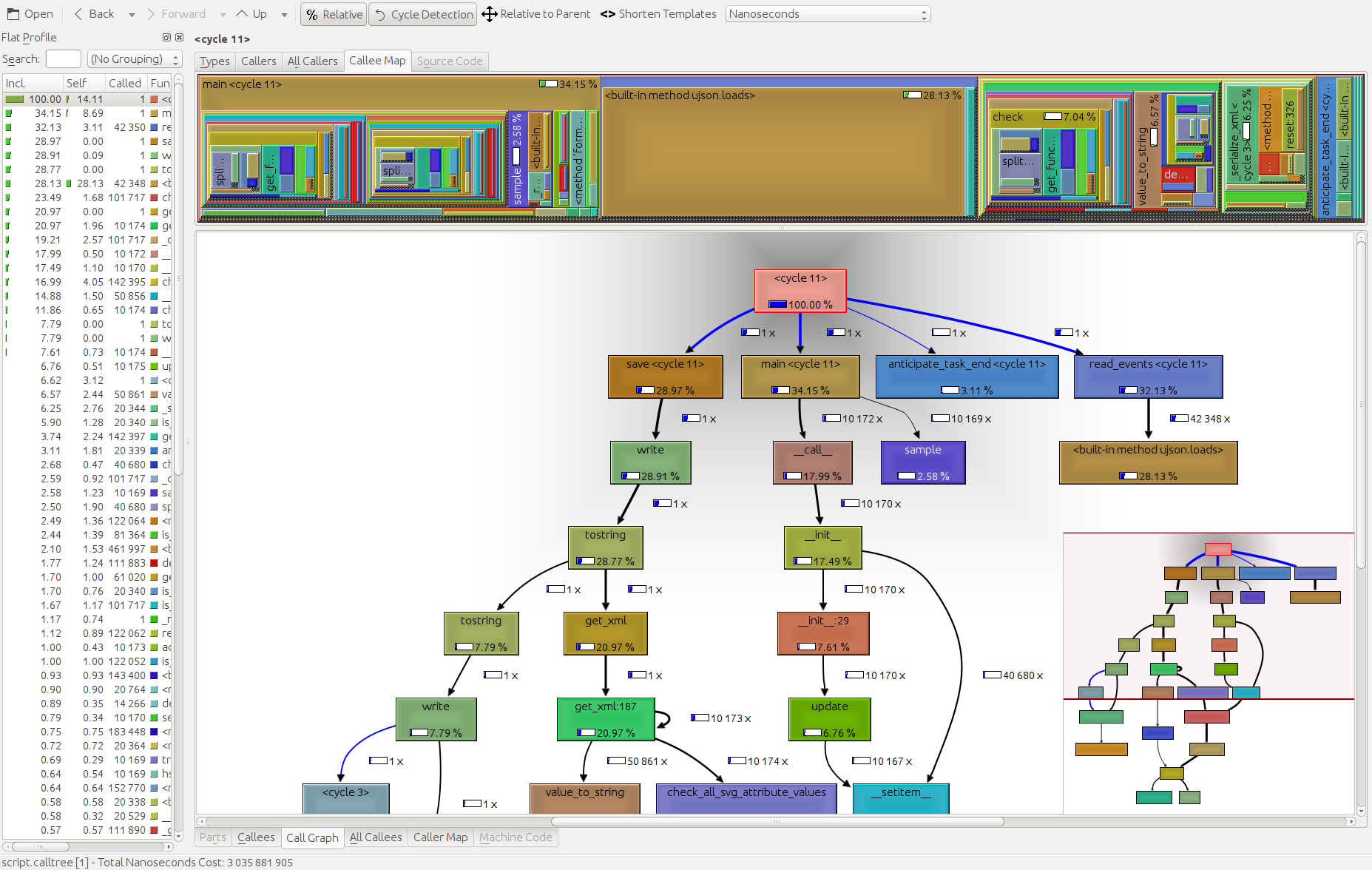각각의 함수가 차지하는, 시간과 메모리를 실시간 분석하여, 누가 많이 사용하는지 드러낸다.