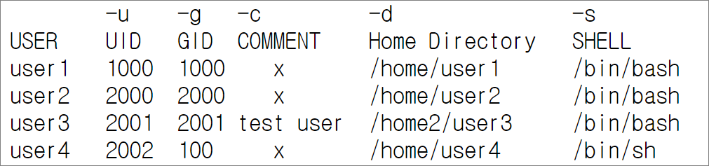 [root@localhost ~]# useradd -g users -s /bin/sh user4