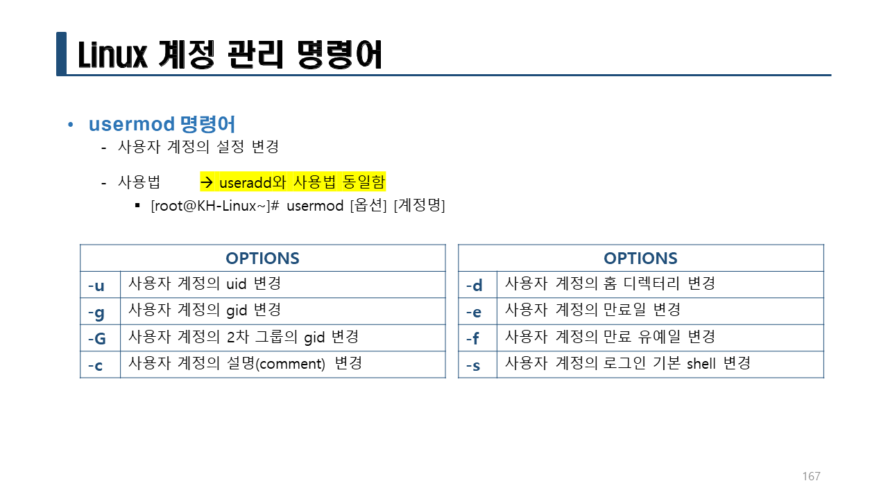 실습> usermod