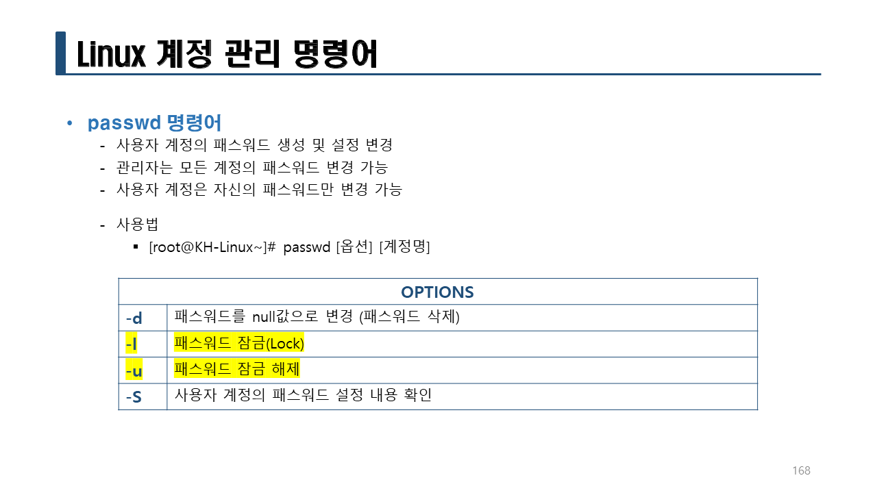 -l 옵션: 사용자를 로그인하지 못하게 Lock을 설정한다.