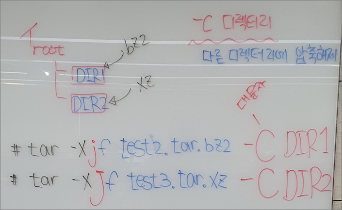 -> -C 디렉터리 : 다른 디렉터리에 압축해제!!!