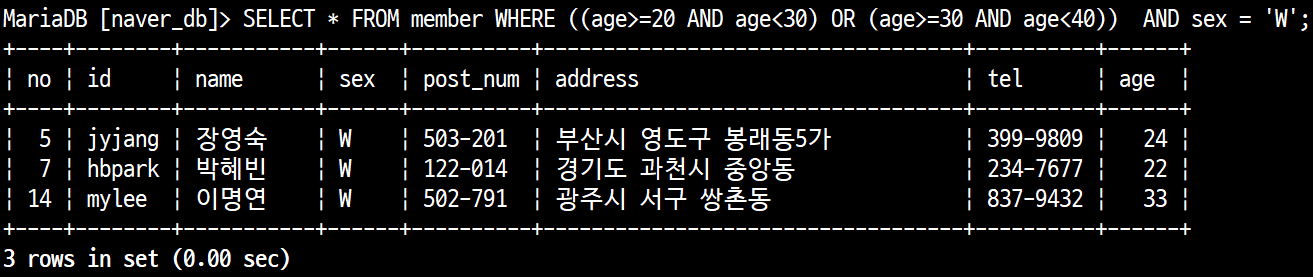 SELECT FROM member LIMIT 3; <-- 3개의 레코드 수를 출력