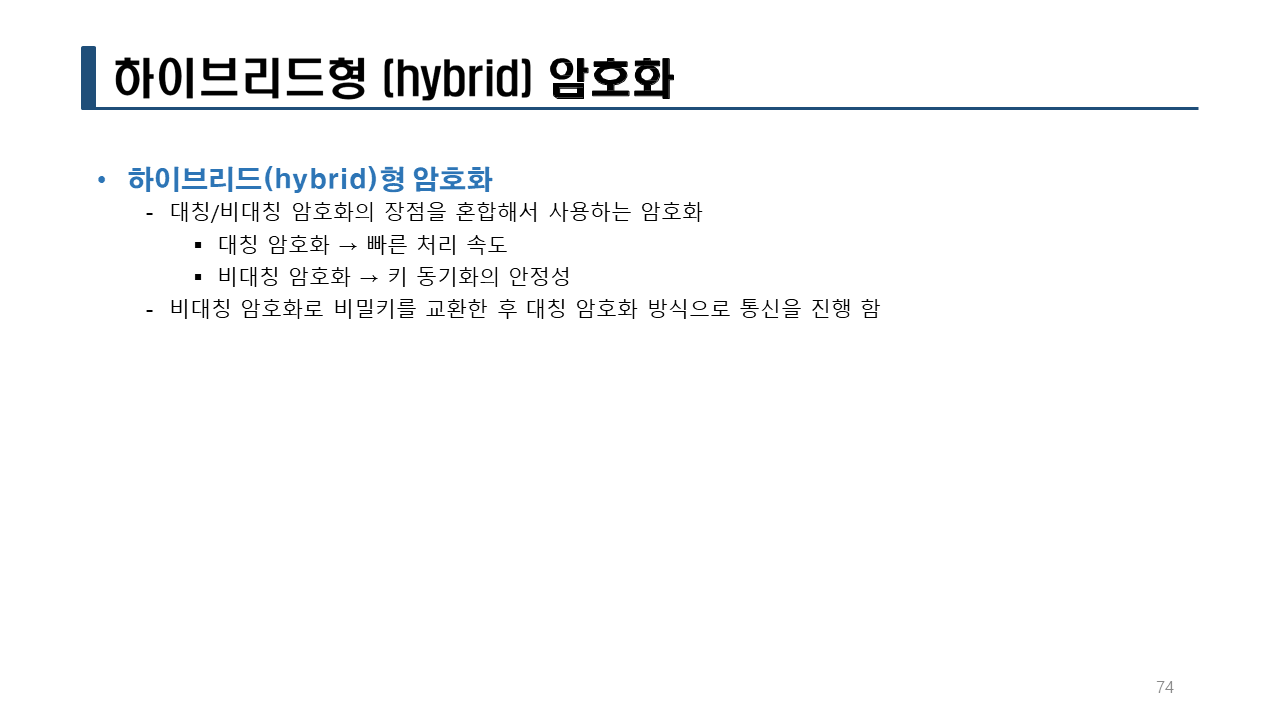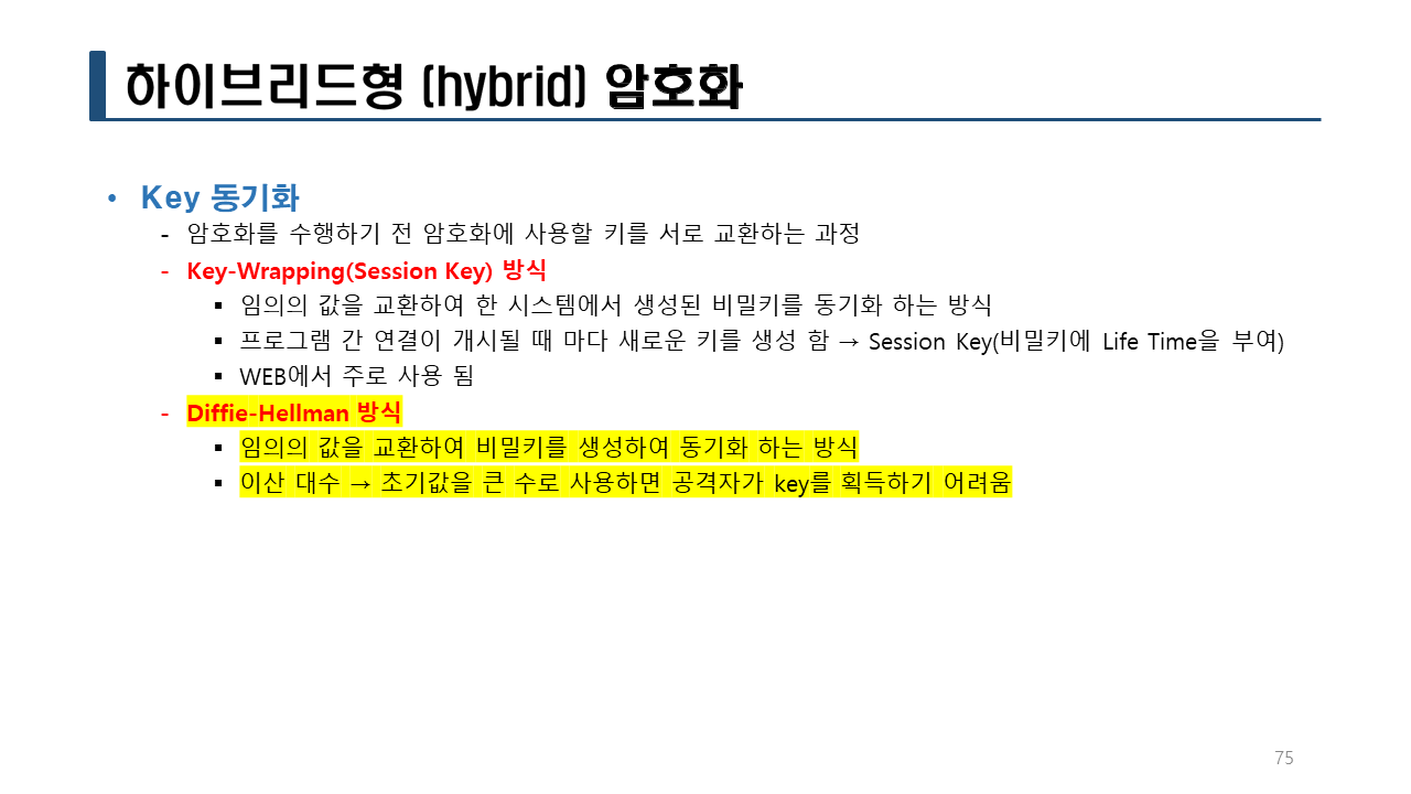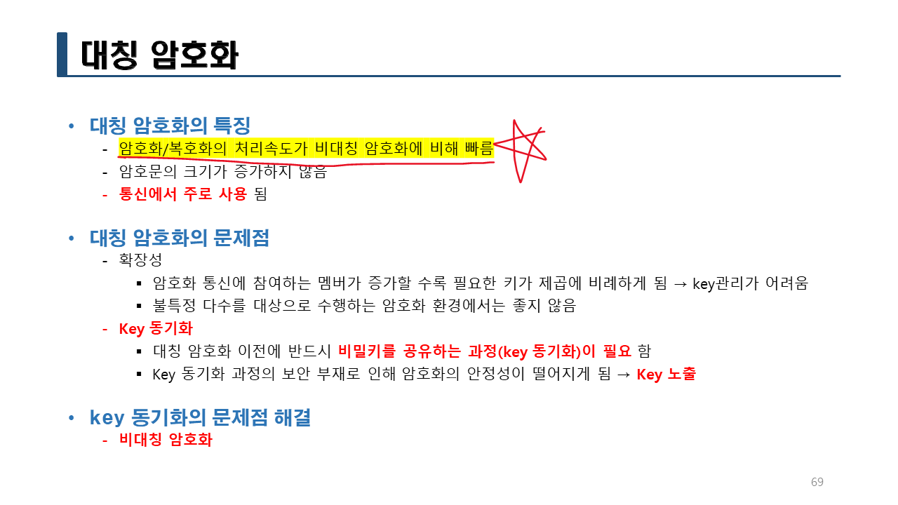 대칭 암호화 이전에 반드시 대칭키를 공유하는 과정(Key 동기화)이 필요하다.