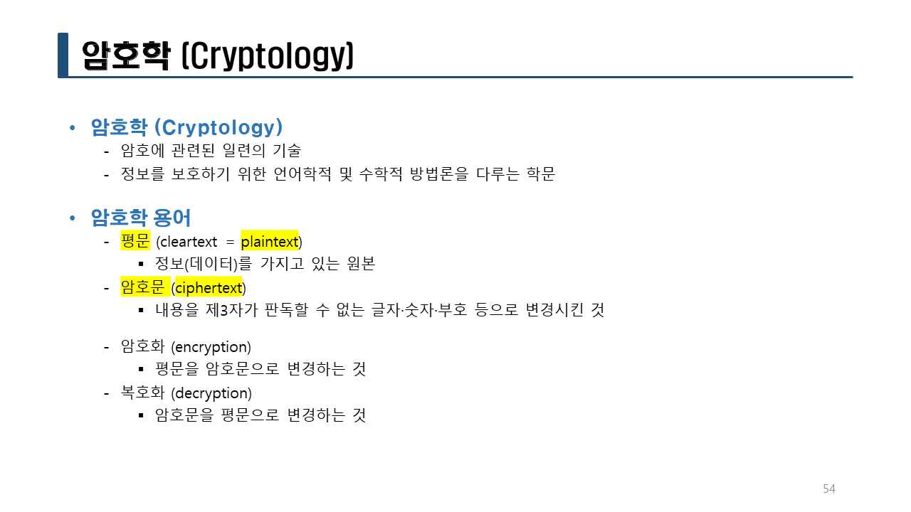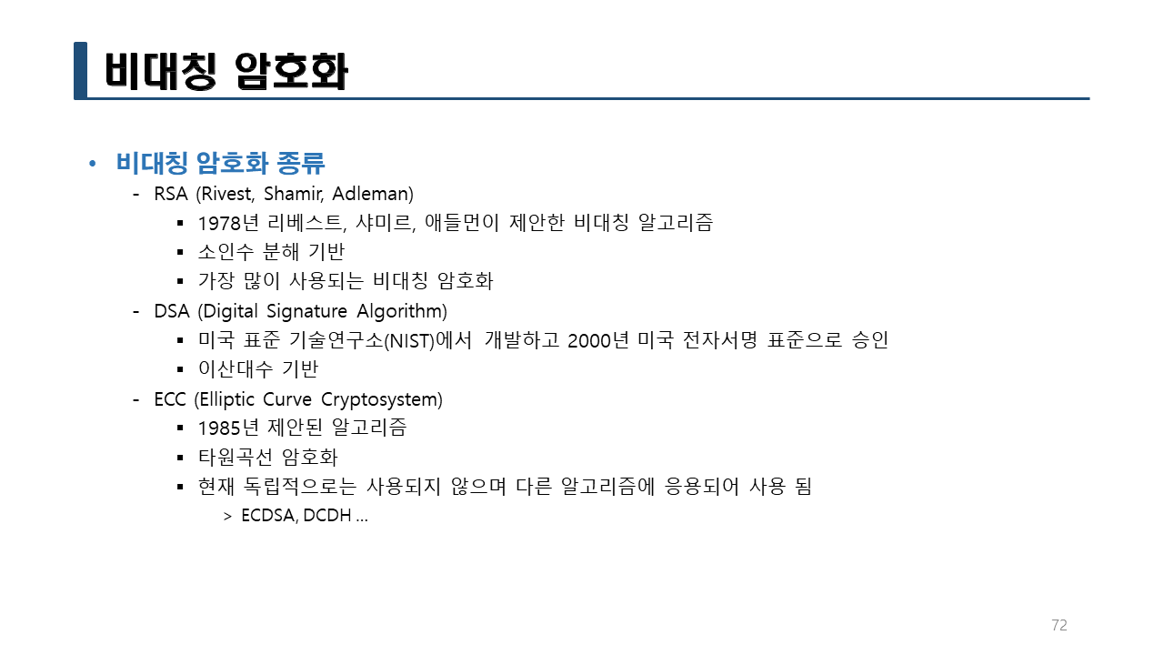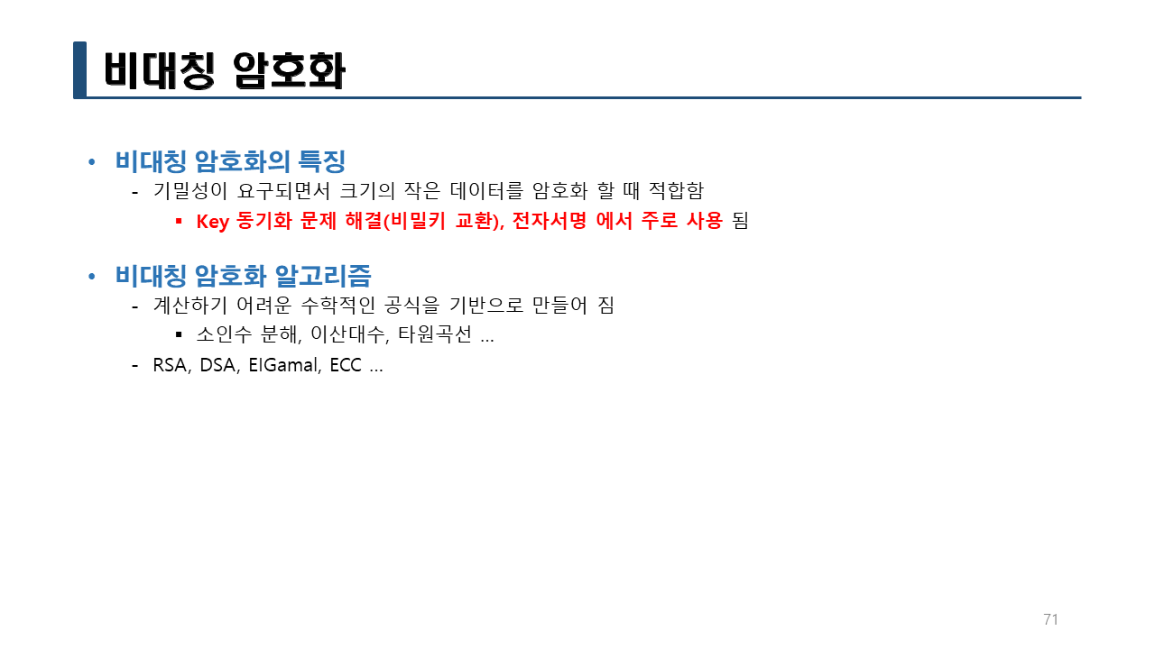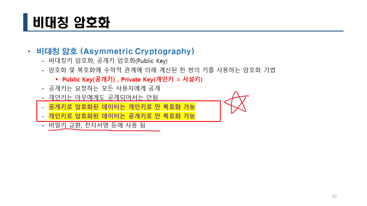 -암호화 및 복호화에 동일한 키를 사용하는 암호화 기법 (암호화키 == 복호화키)