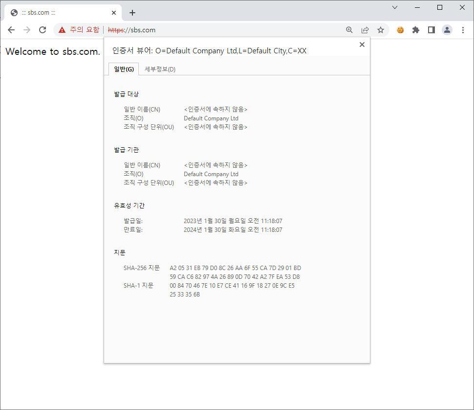 -자가인증을 통해 발행한 인증서: 연습용/개발 서버에서 사용