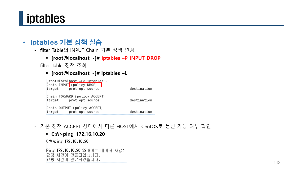 실습> 방화벽 룰 체크하기 (-C 옵션)