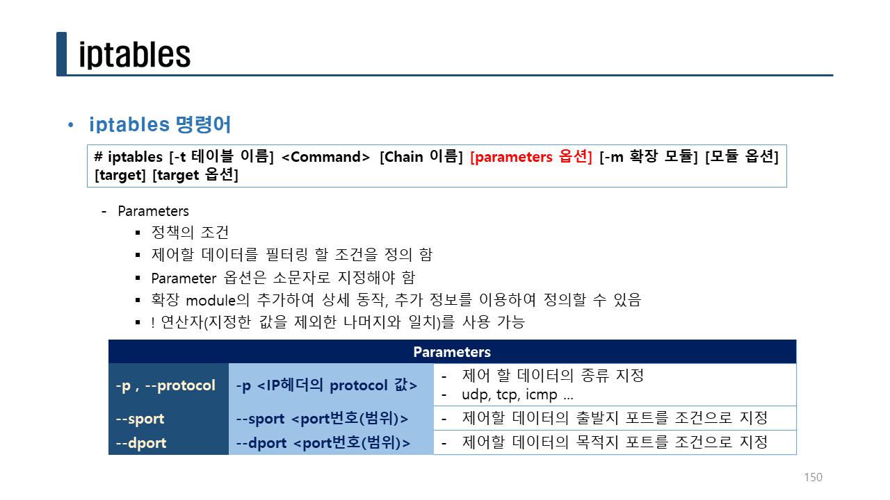 iptables [-t 테이블명] -A 체인명 룰규칙 [옵션]