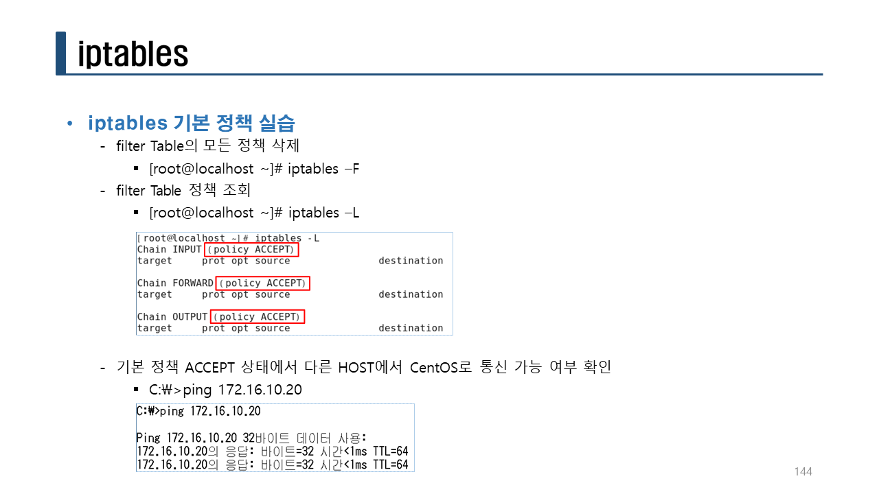 실습> 방화벽 룰 확인하기 (-L 옵션)
