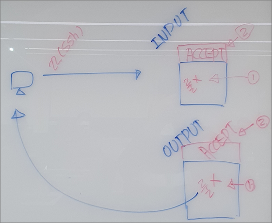 filter INPUT : 패킷이 들어올 때 지나가는 체인 (패킷이 들어오는 문)